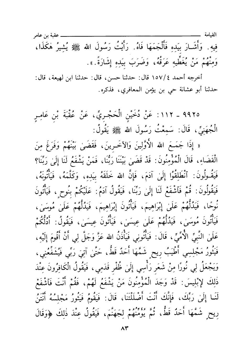 ٩٩٢٥ - عَنْ دُخَيْنٍ الْحَجْرِىِّ , عَنْ عُقْبَةَ بْنِ عَامِرٍ الْجُهَنِيِّ، قَالَ: سَمِعْتُ رَسُولَ اللهِ صلى الله عليه وسلم يَقُولُ: