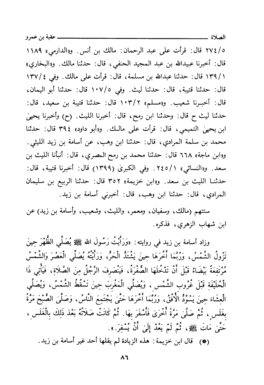 - قال أبو بكر ابن خزيمة: هذه الزيادة لم يقلها أحد غير أسامة بن زيد.