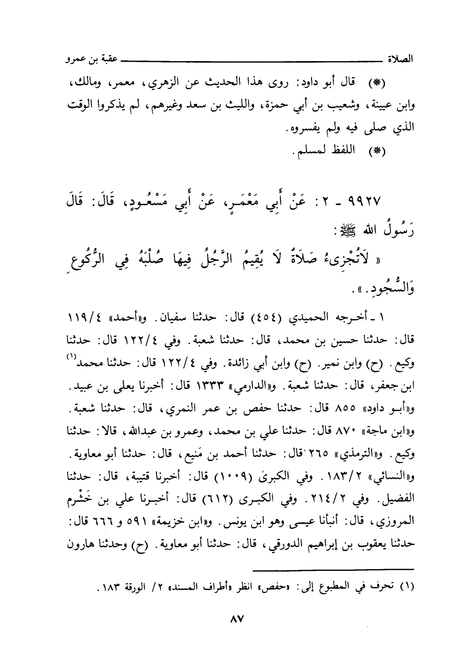 ٩٩٢٧ - عَنْ أَبِي مَعْمَرٍ، عَنْ أَبِي مَسْعُودٍ، قَالَ: قَالَ رَسُولُ اللهِ صلى الله عليه وسلم