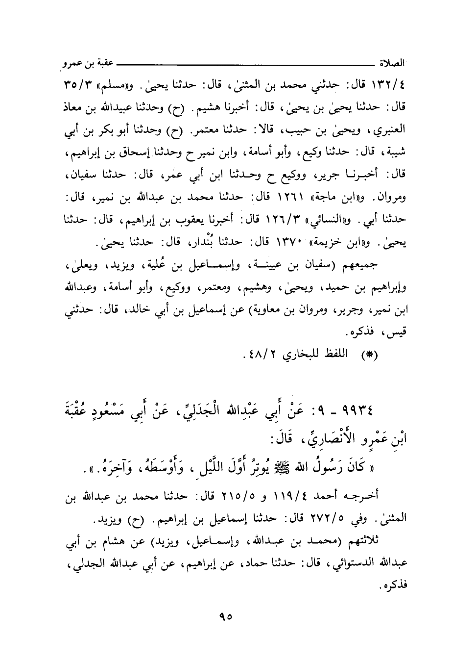 (٣٢٠٤) قال: حدثني محمد بن المثنى، حدَّثنا يحيى. و"مسلم" ٢٠٧٠ قال: حدَّثنا يحيى بن يحيى، أَخْبَرنا هشيم. وفي (٢٠٧١) قال: وحدَّثنا عُبَيْد الله بن معاذ العنبري، ويحيى بن حبيب، قالا: حدَّثنا معتمر. وفي (٢٠٧٢) قال: وحدَّثنا أبو بكر بن أبي شيبة، حدَّثنا وكيع، وأبو أسامة، وابن نمير (ح) وحدَّثنا إسحاق بن إبراهيم، أَخْبَرنا جرير، ووكيع (ح) وحدَّثنا ابن أبي عمر، حدَّثنا سفيان، ومروان. و"ابن ماجة" ١٢٦١ قال: حدَّثنا محمد بن عبد الله بن نمير، حدَّثنا أبي. و"النَّسائي" ٣/ ١٢٦، وفي "الكبرى" ١٨٥٨ قال: أَخْبَرنا يعقوب بن إبراهيم، قال: حدَّثنا يحيى. و"ابن خزيمة" ١٣٧٠ قال: حدَّثنا بُنْدار، حدَّثنا يحيى.