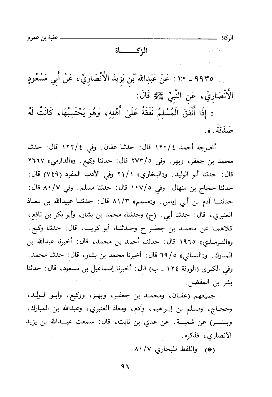 ٩٩٣٥ - عَنْ عَبْدِ اللهِ بْنَ يَزِيدَ الأَنْصَارِيِّ، عَنْ أَبِي مَسْعُودٍ الْبَدْرِيِّ، عَنِ النَّبِيِّ صلى الله عليه وسلم، أَنَّهُ قَالَ: