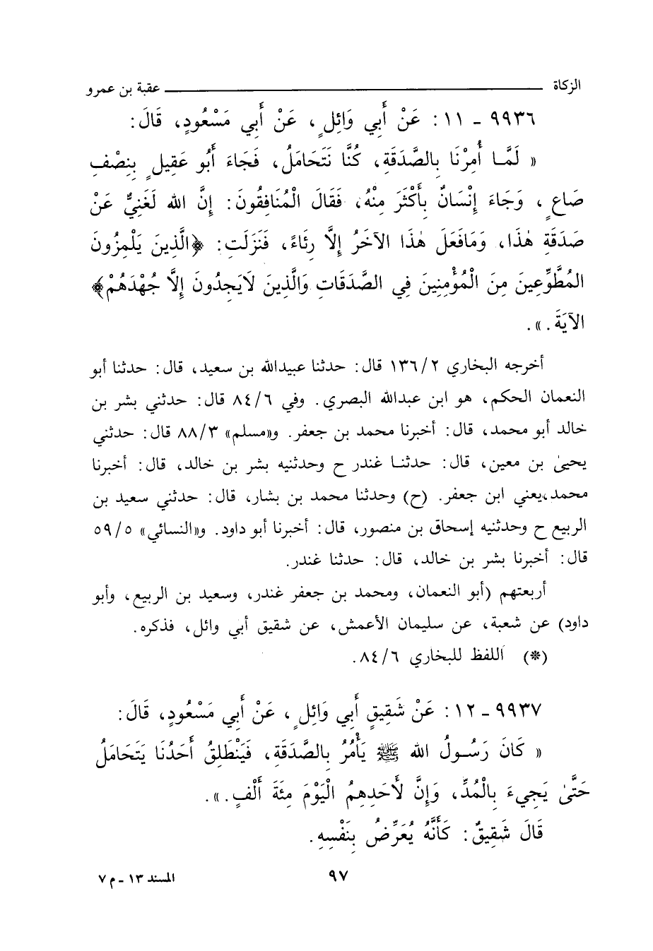 ٩٩٣٧ - عَنْ شَقِيقٍ، عَنْ عُقْبَةَ بْنِ عَمْرٍو، أَبِي مَسْعُودٍ، قَالَ: