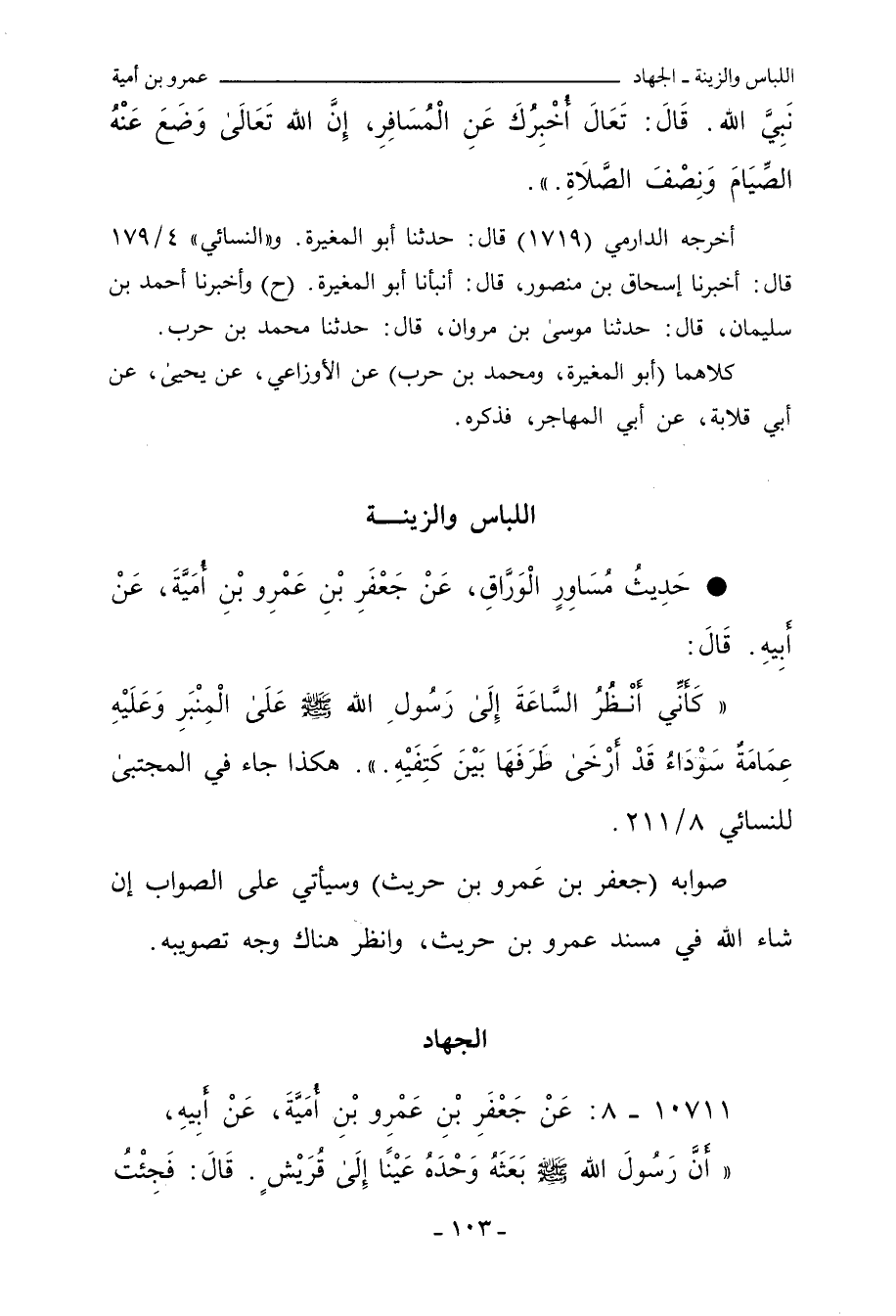- حَدِيثُ مُسَاوِرٍ الْوَرَّاقِ، عَنْ جَعْفَرِ بْنِ عَمْرِو بْنِ أُمَيَّةَ، عَنْ أَبِيهِ، قَالَ: