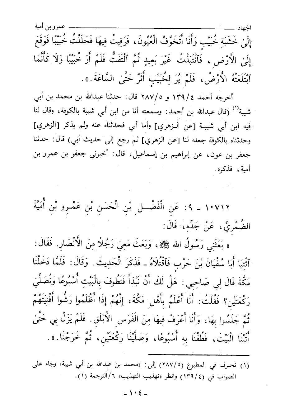 أخرجه أحمد ٤/ ١٣٩ (١٧٣٨٤) و ٥/ ٢٨٧ (٢٢٨٤٤) قال: حدَّثنا عَبْد الله بن مُحَمد بن أَبي شَيْبَة (قال أبو عَبْد الرَّحْمان، عَبْد الله بن أحمد: وسَمِعْتُهُ أنا من عَبْد الله بن أَبي شَيْبَة بالكُوفة، قال: حدَّثنا جَعْفَر بن عَوْن، عن إبراهيم بن إِسْمَاعِيل، قال: أخبرني جَعْفَر بن عَمْرو بن أُمَيَّة، فذكره.