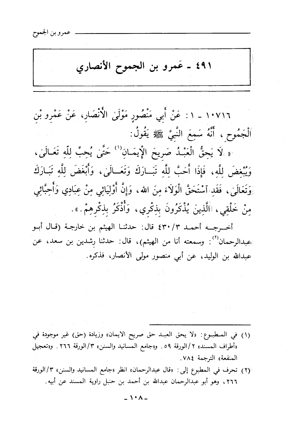 ٤٩١ - عَمْرو بن الجَمُوح الأَنْصَارِيّ