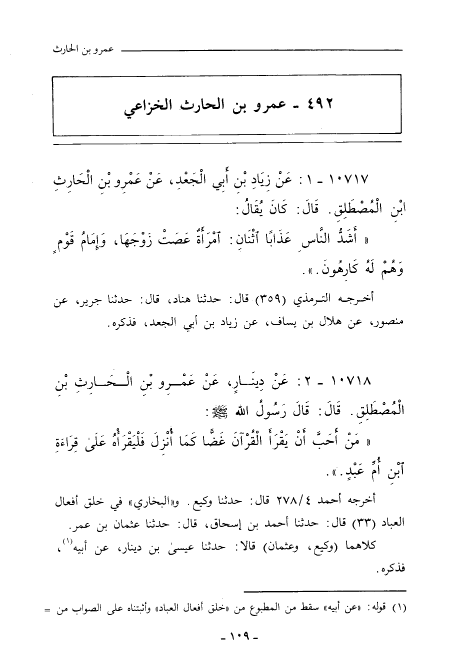 ٤٩٢ - عَمْرو بن الحارث الخُزَاعِي