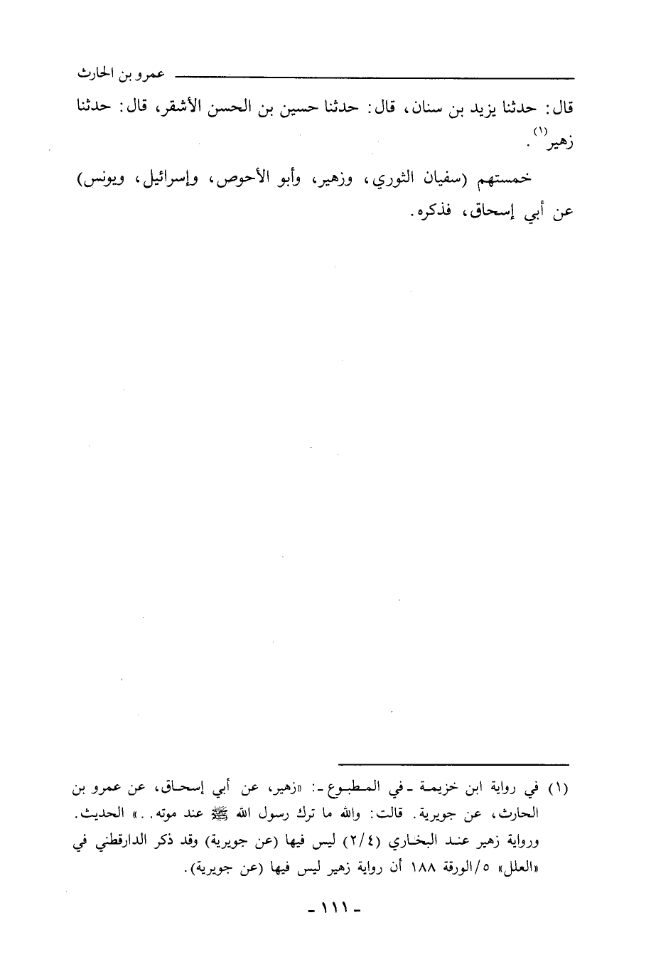 قال: حدَّثنا يَزِيد بن سِنَان، حدَّثنا حُسَيْن بن الحَسَن الأَشْقَر، حدَّثنا زُهَيْر.