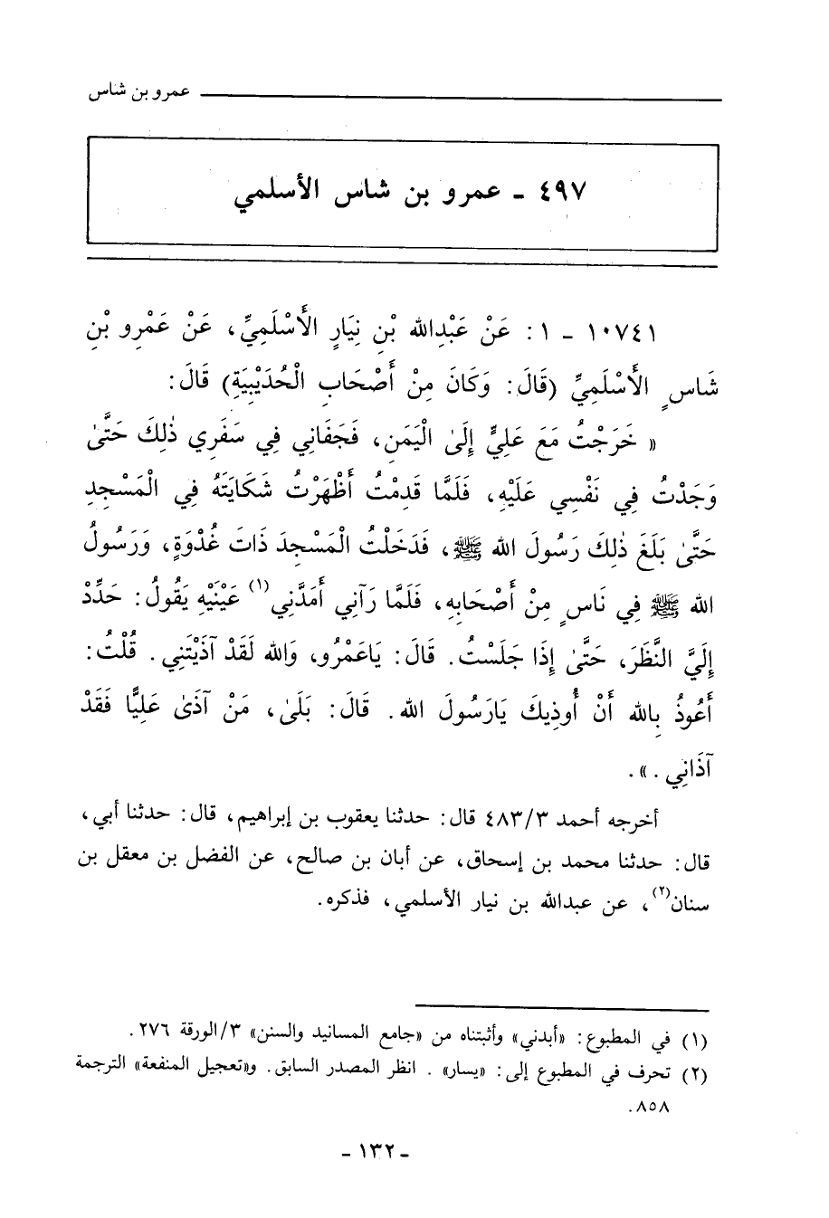 ٤٩٧ - عَمْرو بن شاس الأَسْلَمِي