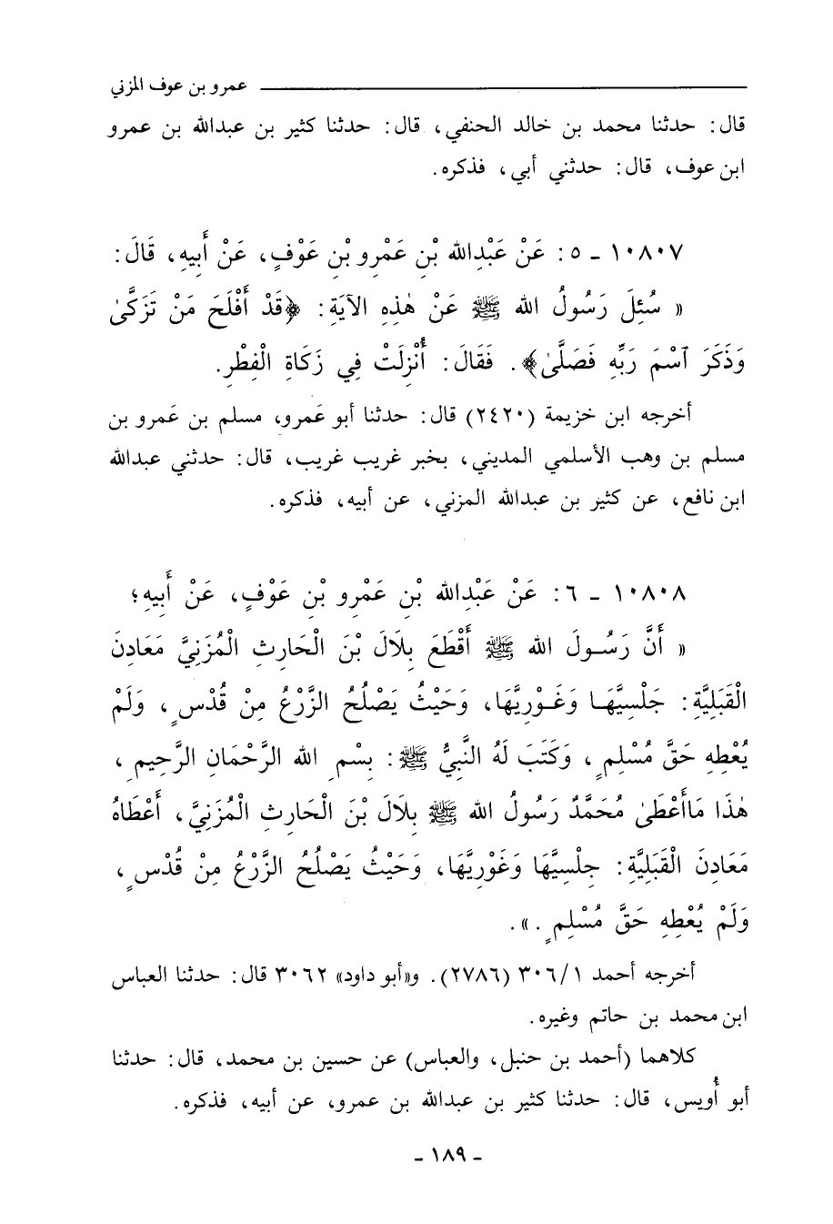 كلاهما (أحمد بن حَنْبل، والعَبَّاس) عن حُسَيْن بن مُحَمد، حدَّثنا أبو أُوَيْس، حدَّثنا كَثِير ابن عَبْد الله بن عَمْرو بن عَوْف المُزَني، عن أبيه، عن جَدِّه، فذكره.