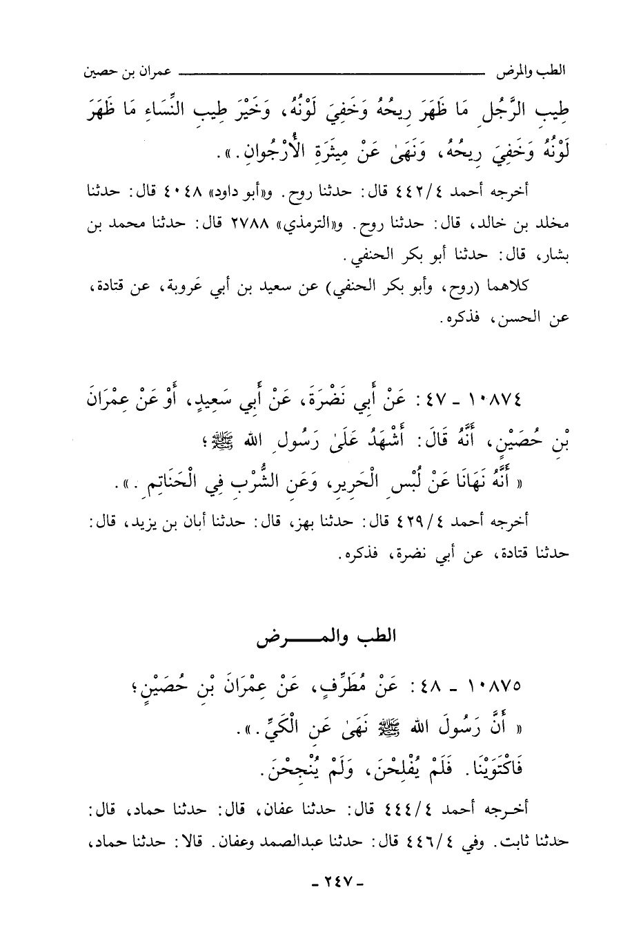 ١٠٨٧٥ - عَنْ مُطُرِّفٍ، عَنْ عِمْرَانَ بْنِ حُصَيْنِ؛