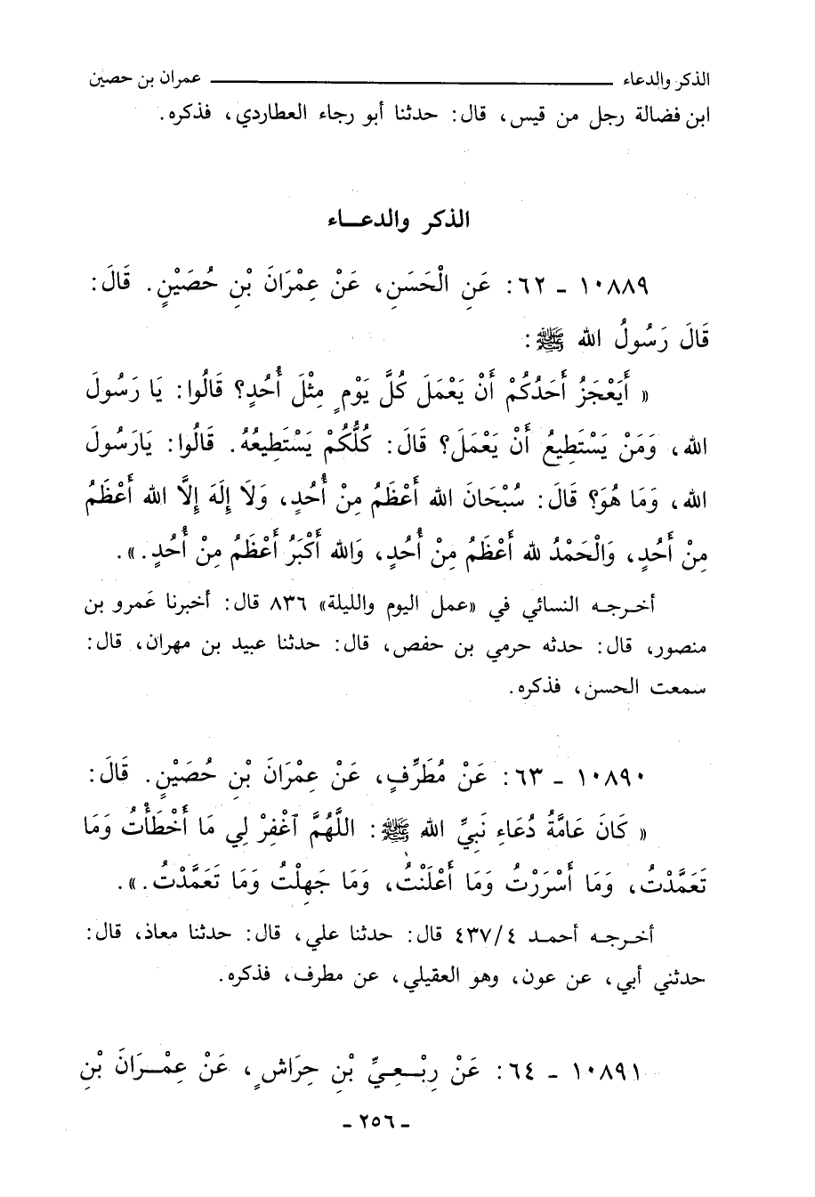 أَيَعْجَزُ أَحَدُكُمْ أَنْ يَعْمَلَ كُلَّ يَوْمٍ مِثْلَ أُحُدٍ؟ قَالُوا: يَا رَسُولَ اللهِ، وَمَنْ يَسْتَطِيعُ أَنْ يَعْمَلَ؟ قَالَ: كُلُّكُمْ يَسْتَطِيعُهُ، قَالُوا: يَا رَسُولَ اللهِ، وَمَا هُوَ؟ قَالَ: سُبْحَانَ اللهِ أَعْظَمُ مِنْ أُحُدٍ، وَلَا إِلَهَ إِلَاّ اللهُ أَعْظَمُ مِنْ أُحُدٍ، وَالْحَمْدُ ِللهِ أَعْظَمُ مِنْ أُحُدٍ، وَاللهُ أَكْبَرُ أَعْظَمُ مِنْ أُحُدٍ.