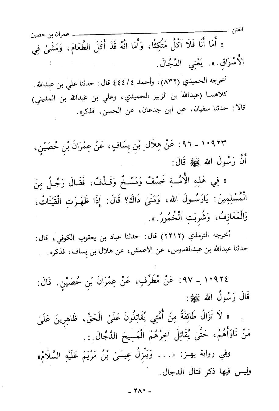 أخرجه الحُمَيْدِي (٨٣٢). وأحمد ٤/ ٤٤٤ (٢٠٢٣٥) قال: حدَّثنا علي بن عَبْد الله.