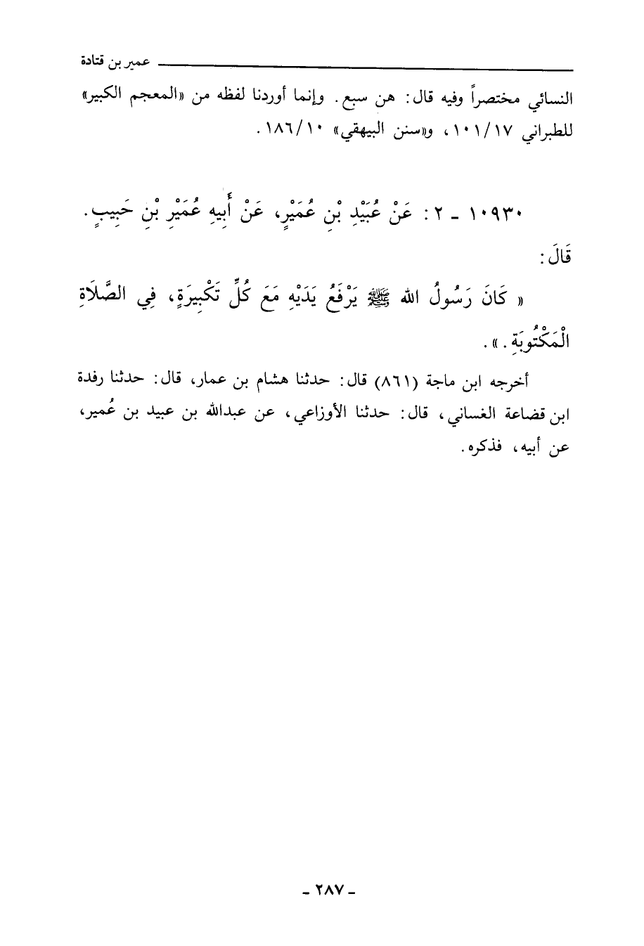 أخرجه ابن ماجة (٨٦١) قال: حدَّثنا هِشَام بن عَمَّار، حدَّثنا رِفْدة بن قُضَاعَة الغَسَّانِي، حدَّثنا الأَوْزَاعِي، عن عَبْد الله بن عُبَيْد بن عُمَيْر، عن أبيه، عن جَدِّه، فذكره.