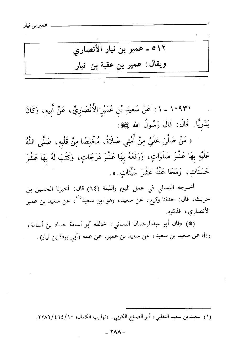 ٥١٢ - عُمَيْر بن نِيَار الأَنْصَارِيُّ