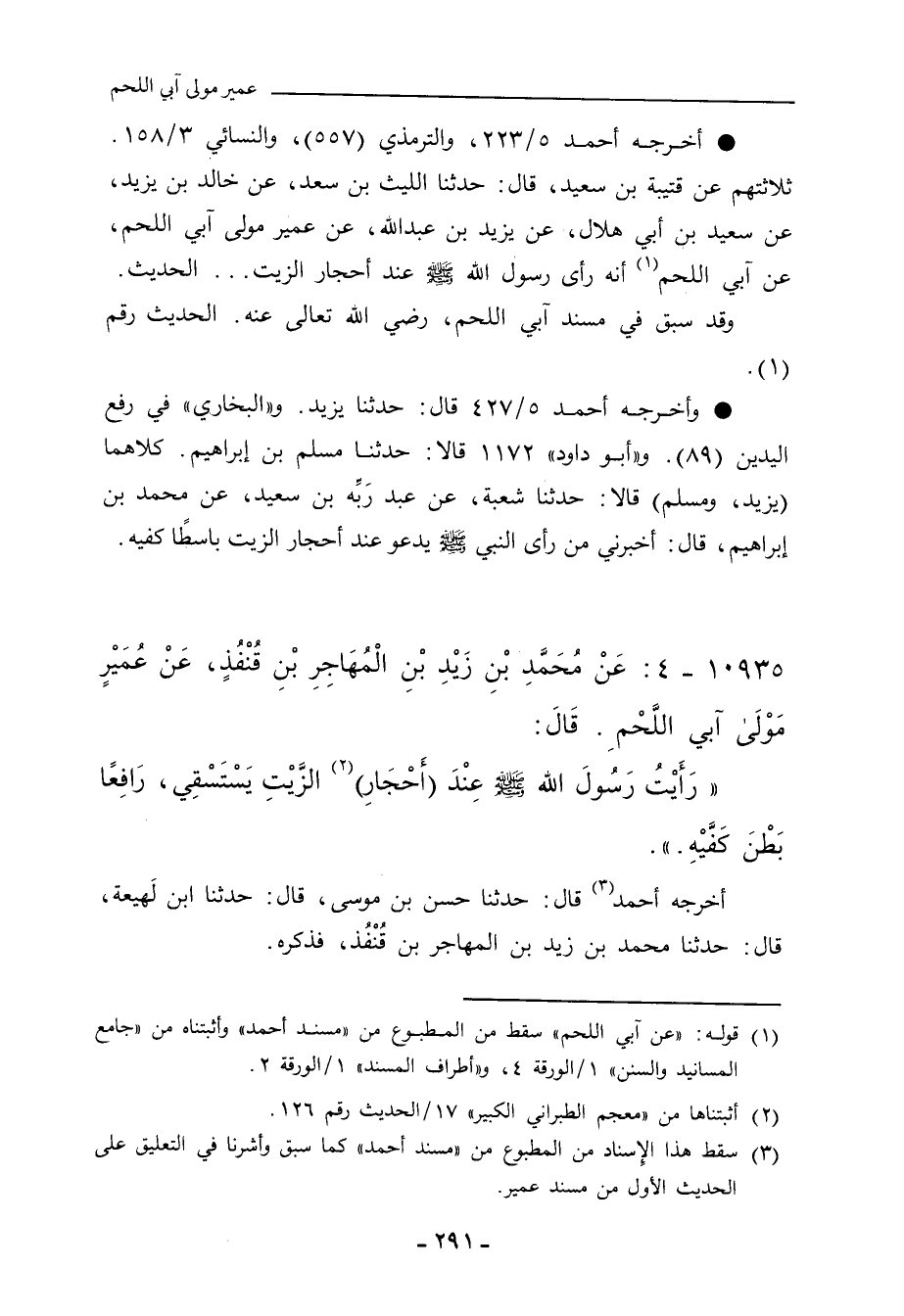 ثلاثتهم، عن قُتَيْبَة بن سَعِيد، حدَّثنا اللَّيْث بن سَعْد، عن خالد بن يَزِيد، عن سَعِيد بن أَبي هِلَال، عن يَزِيد بن عَبْد الله، عن عُمَيْر مَوْلَى آبِي اللَّحْمِ، عَنْ آبِي اللَّحْمِ؛