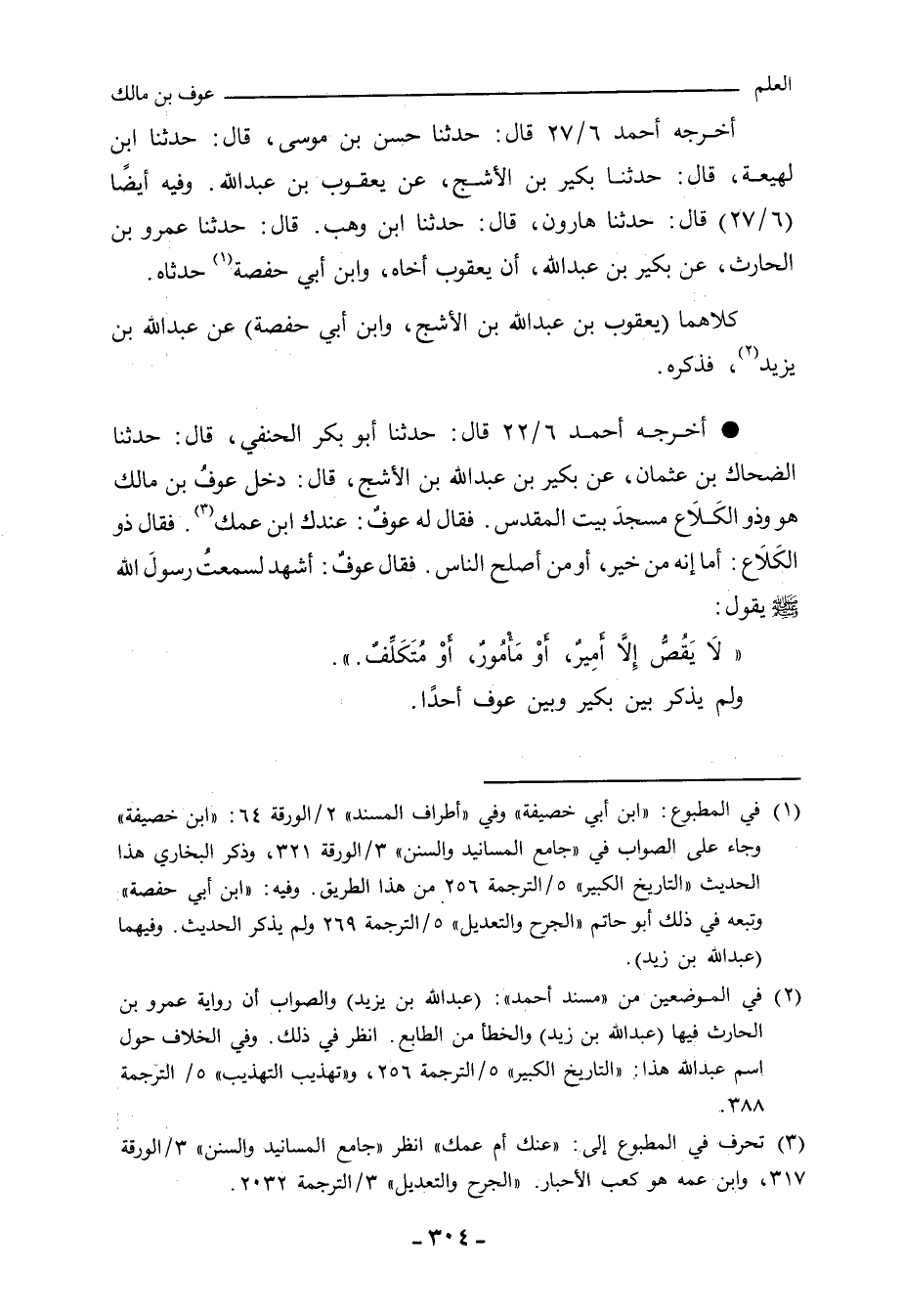 - أخرجه أحمد ٦/ ٢٢ (٢٤٤٧٢) قال: حدَّثنا أبو بَكْر الحَنَفِي، قال: حدَّثنا الضَّحَّاك بن عُثْمان، عن بُكَيْر بن عَبْد الله بن الأَشَجّ، قال: دخل عَوْفُ بن مالك هو وذو الكَلَاع، مسجدَ بيت المَقْدِس، فقال له عَوْفٌ: عندك ابن عَمِّك، فقال ذو الكَلَاع: أما إنه من خير، أو من أصلح النَّاس، فقال عَوْفٌ: أَشْهَدُ لَسَمِعْتُ رَسُولَ اللهِ صلى الله عليه وسلم يَقُولُ:
