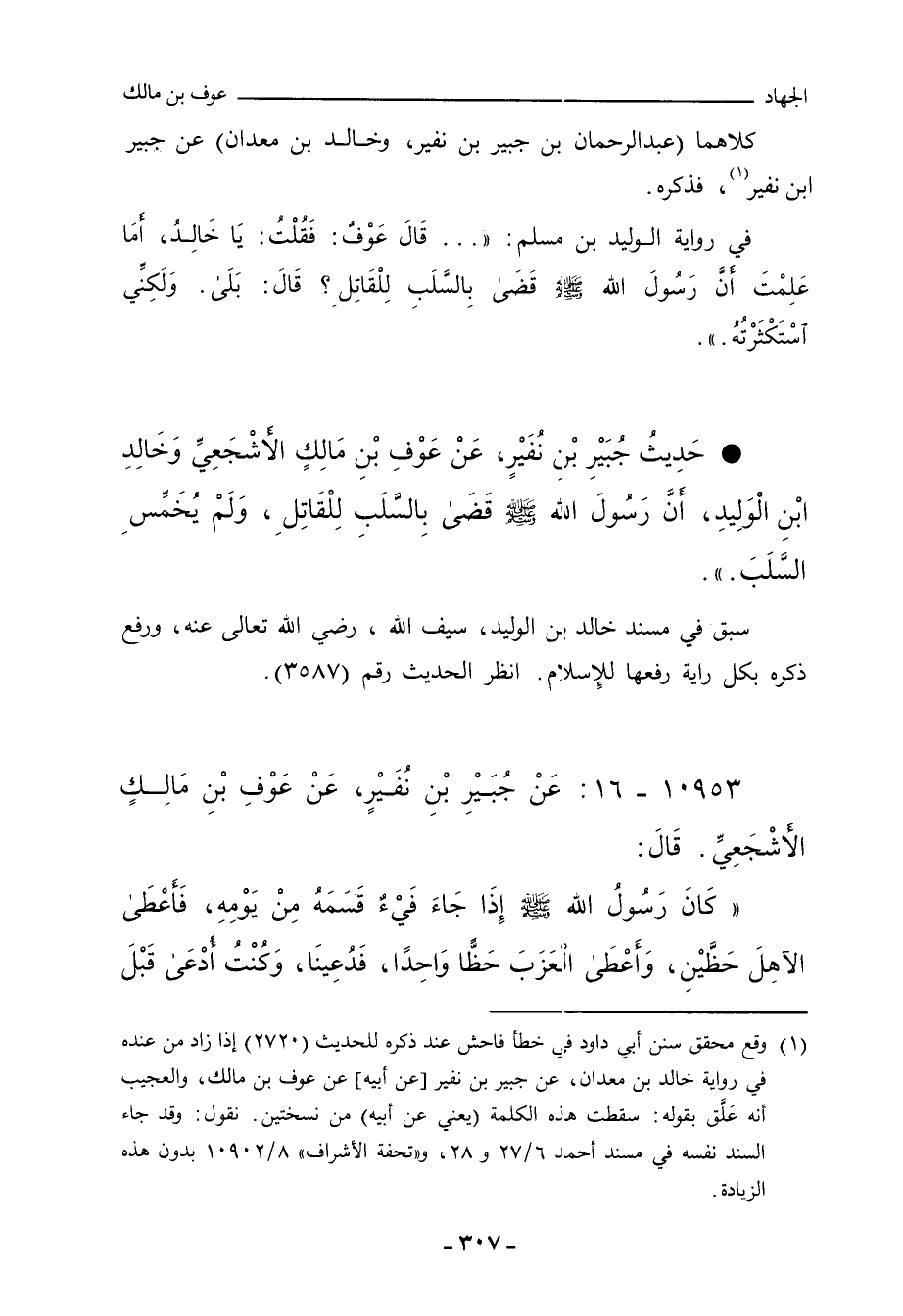 - حَدِيثُ جُبَيْرِ بْنِ نُفَيْرٍ، عَنْ عَوْفِ بْنِ مَالِكٍ الأَشْجَعِيِّ، وَخَالِدِ بْنِ الْوَلِيدِ؛