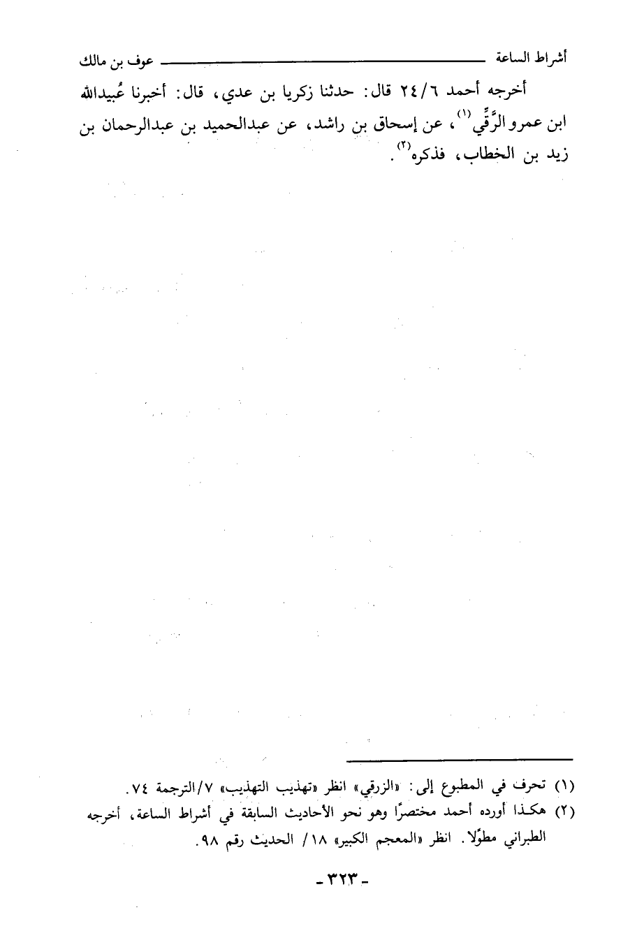 أخرجه أحمد ٦/ ٢٤ (٢٤٤٧٩) قال: حدَّثنا زكريا بن عَدِي، قال: أنبأنا عُبَيْد الله بن عَمْرو الرَّقِّي، عن إِسْحَاق بن راشد، عن عَبْد الحَمِيد بن عَبْد الرَّحْمان بن زَيْد بن الخَطَّاب، فذكره.