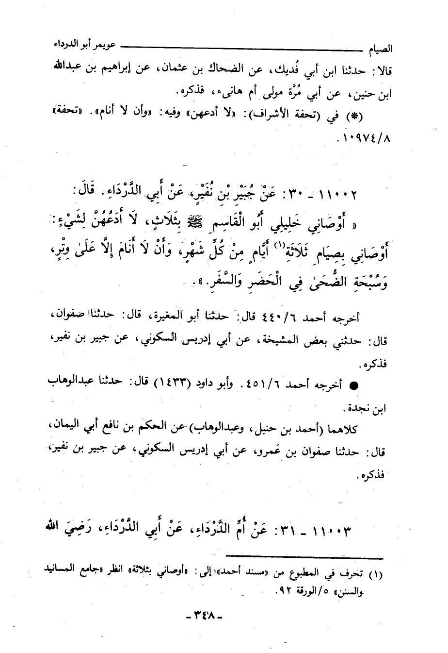 ١١٠٠٢ - عَنْ جُبَيْرِ بْنِ نُفَيْرٍ، عَنْ أَبِي الدَّرْدَاءِ، قَالَ: