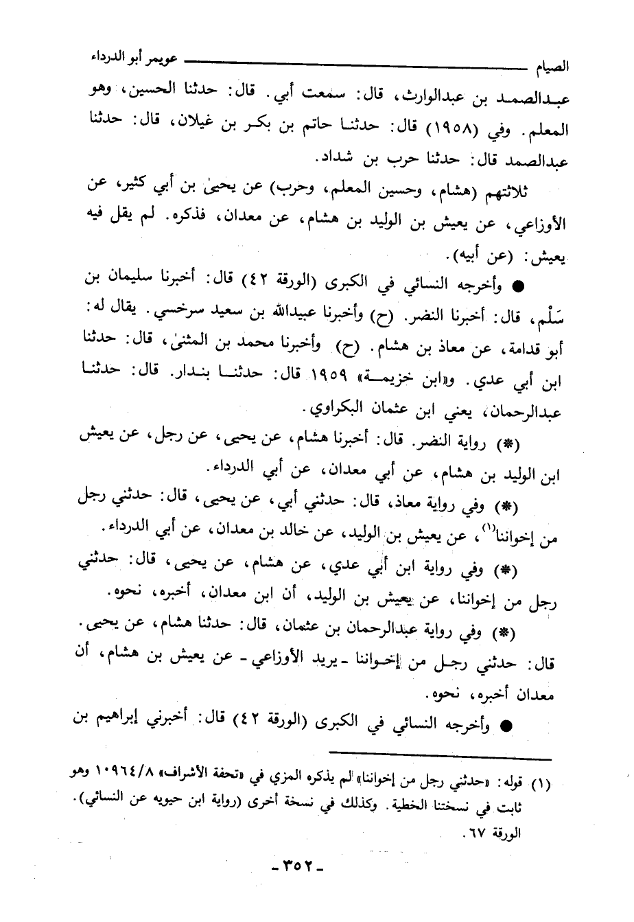 ثلاثتهم (هشام، وحسين المعلم، وحرب) عن يحيى بن أبي كثير، عن الأوزاعي، عن يعيش بن الوليد بن هشام، عن معدان، عن أبي الدرداء؛