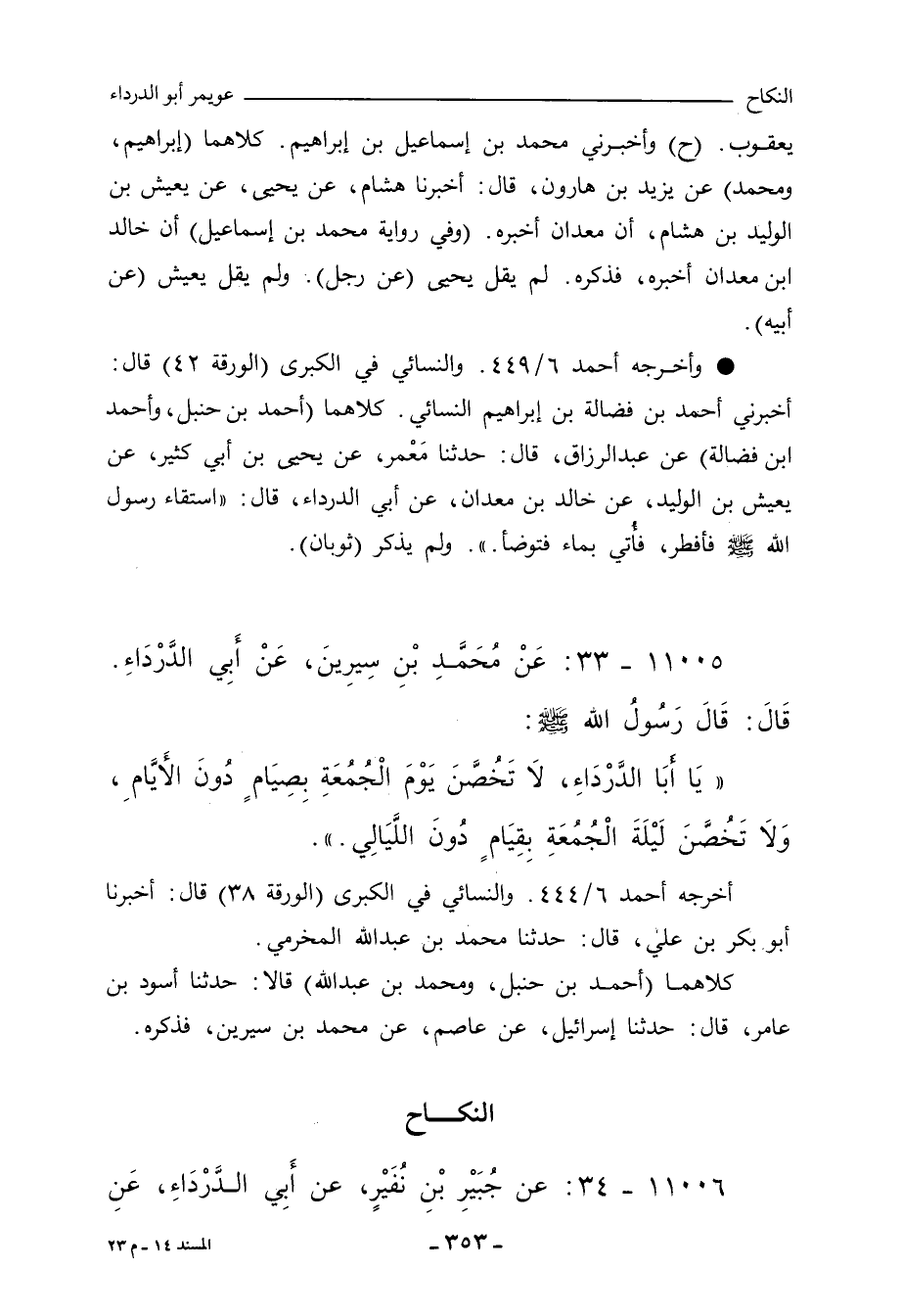١١٠٠٦ - عَنْ جُبَيْرِ بْنِ نُفَيْرٍ، عَنْ أَبِي الدَّرْدَاءِ، عَنِ