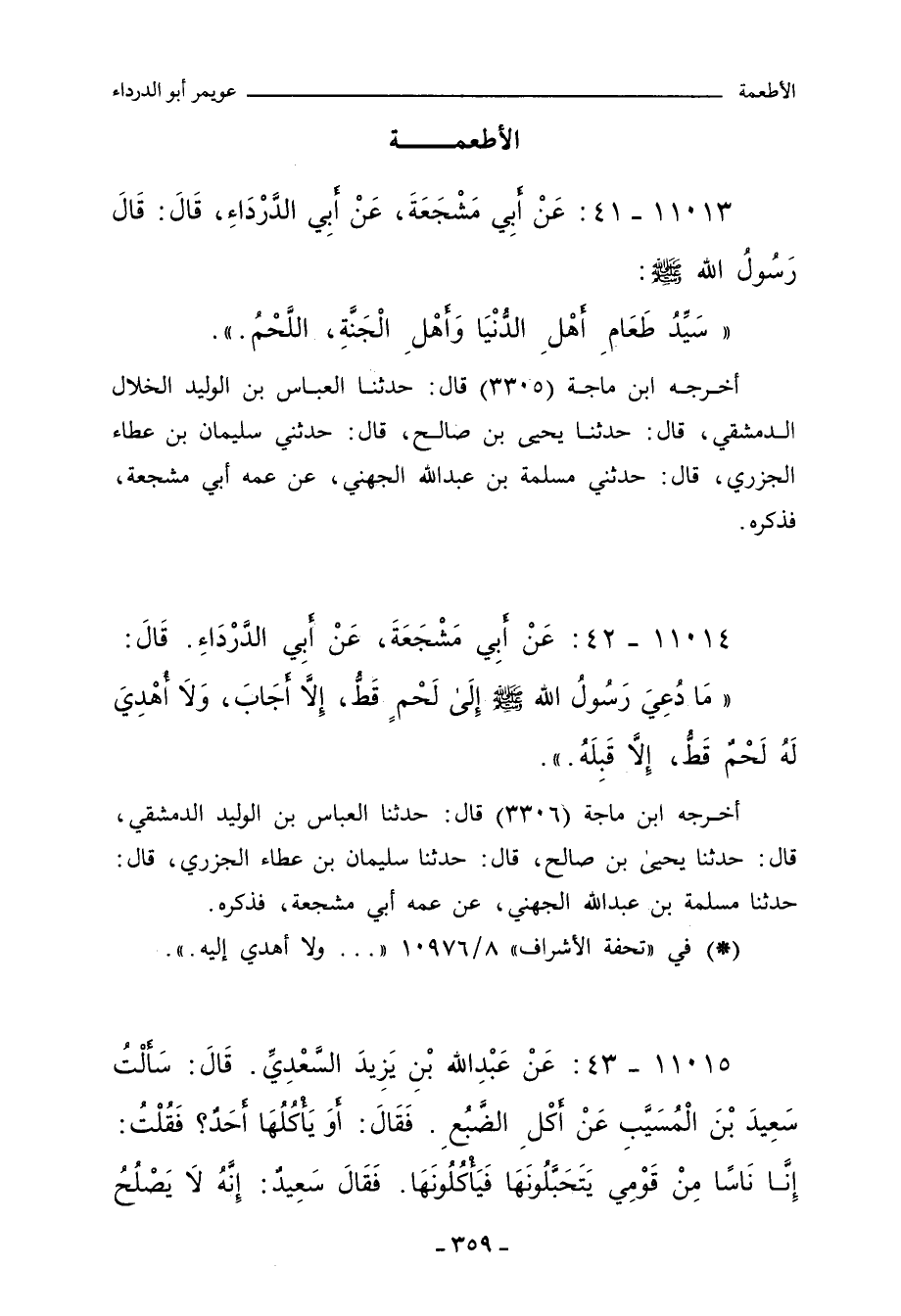 ١١٠١٣ - عَنْ أَبِي مَشْجَعَةَ، عَنْ أَبِي الدَّرْدَاءِ، قَالَ: قَالَ رَسُولُ اللهِ صلى الله عليه وسلم: