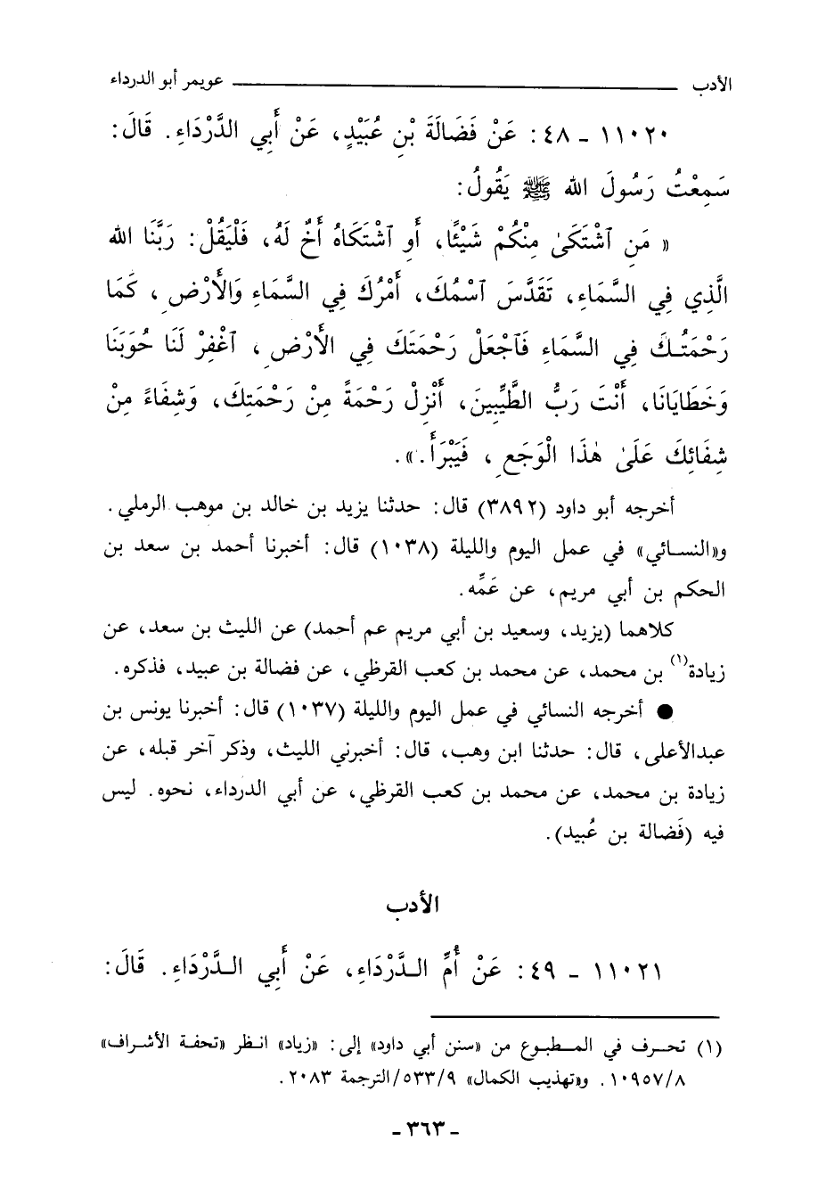 ١١٠٢١ - عَنْ أُمِّ الدَّرْدَاءِ، عَنْ أَبِي الدَّرْدَاءِ،