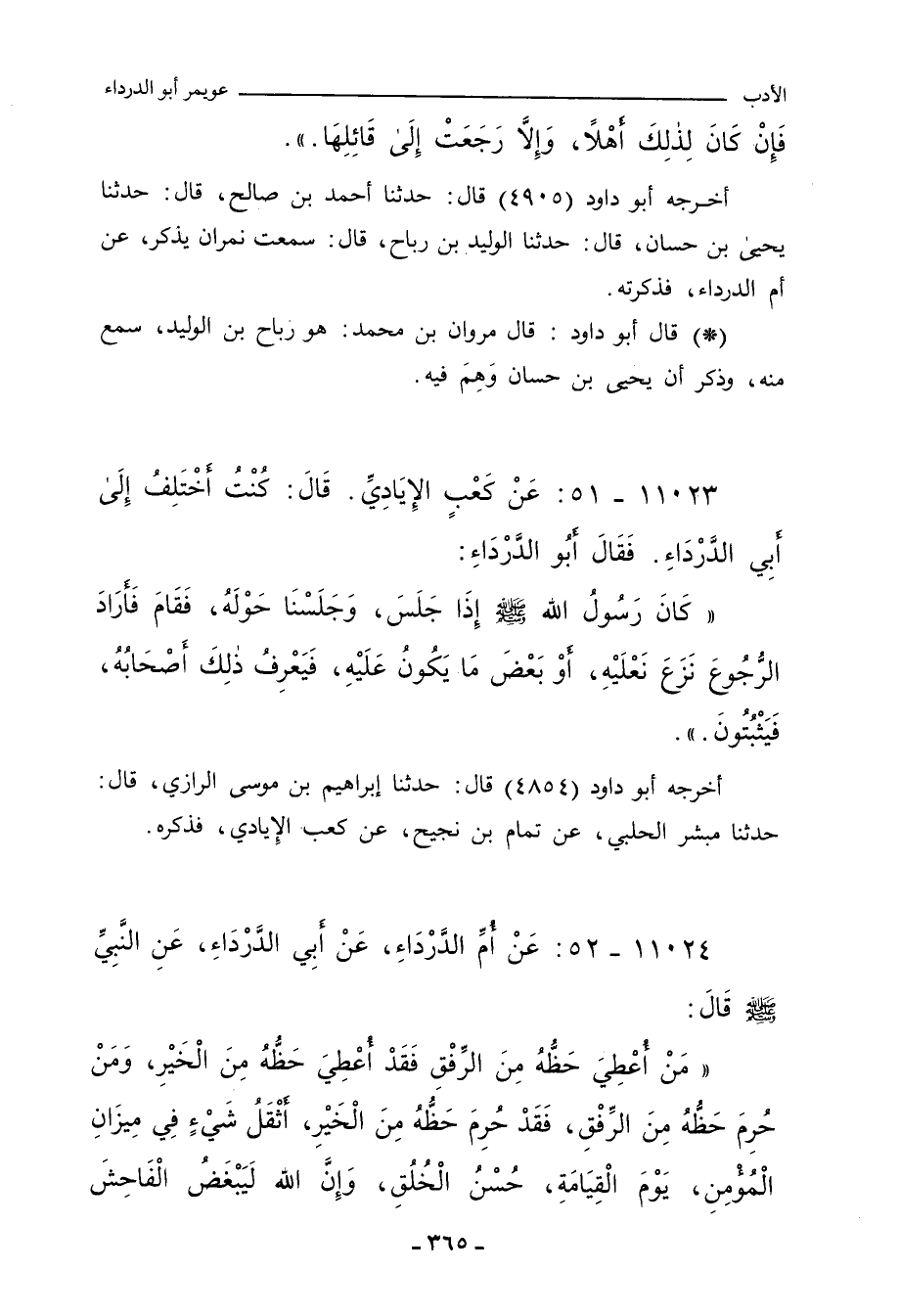 أخرجه أبو داود (٤٩٠٥) قال: حدثنا أحمد بن صالح، حدثنا يحيى بن حسان، حدثنا الوليد بن رباح، قال: سمعت نمران يذكر، عن أم الدرداء، فذكرته.