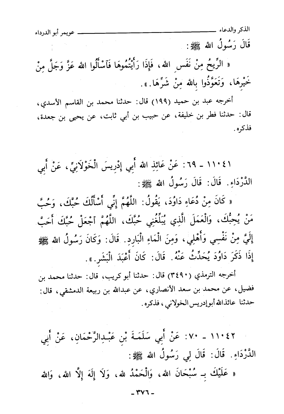١١٠٤٢ - عَنْ أَبِي سَلَمَةَ بْنِ عَبْدِ الرَّحْمَانِ، عَنْ أَبِي الدَّرْدَاءِ، قَالَ: