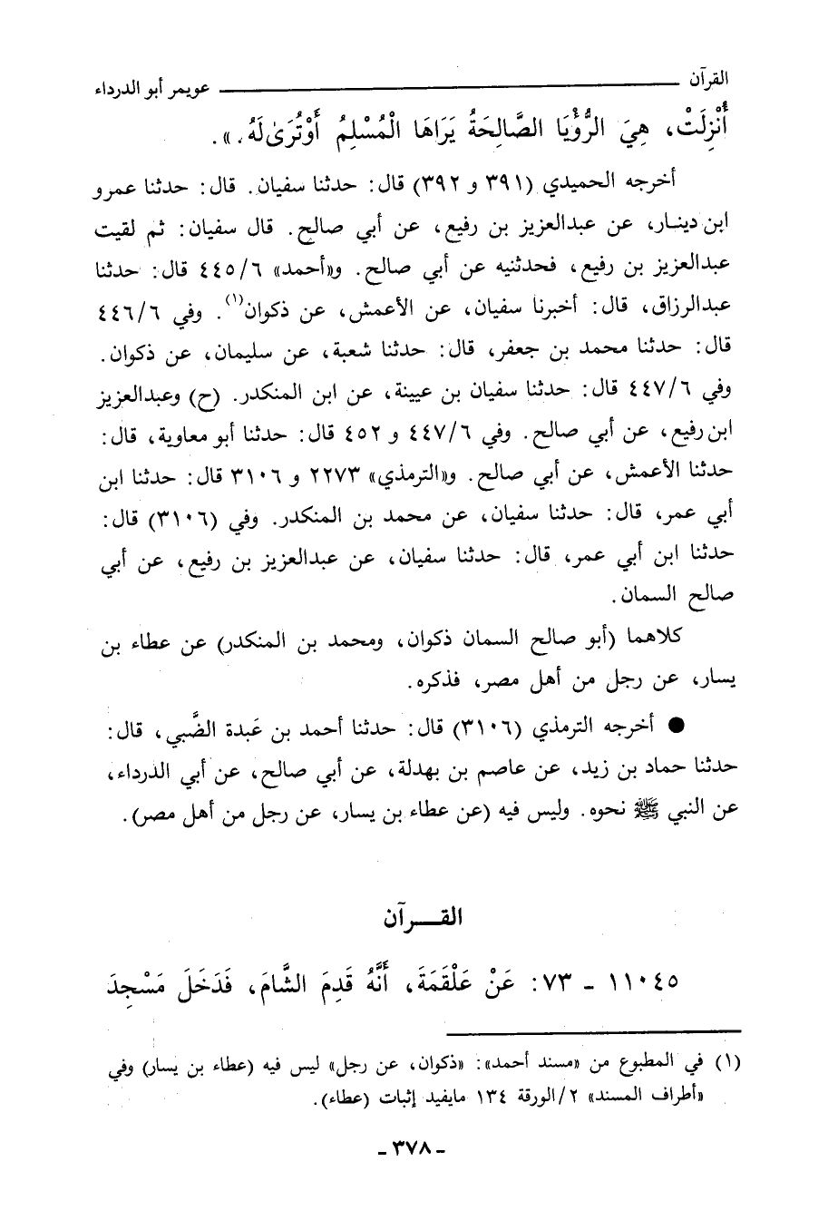 ١١٠٤٥ - عَنْ عَلْقَمَةَ، أَنَّهُ قَدِمَ الشَّامَ، فَدَخَلَ مَسْجِدَ