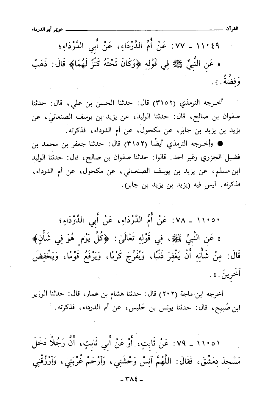 ١١٠٤٩ - عَنْ أُمِّ الدَّرْدَاءِ، عَنْ أَبِي الدَّرْدَاءِ؛