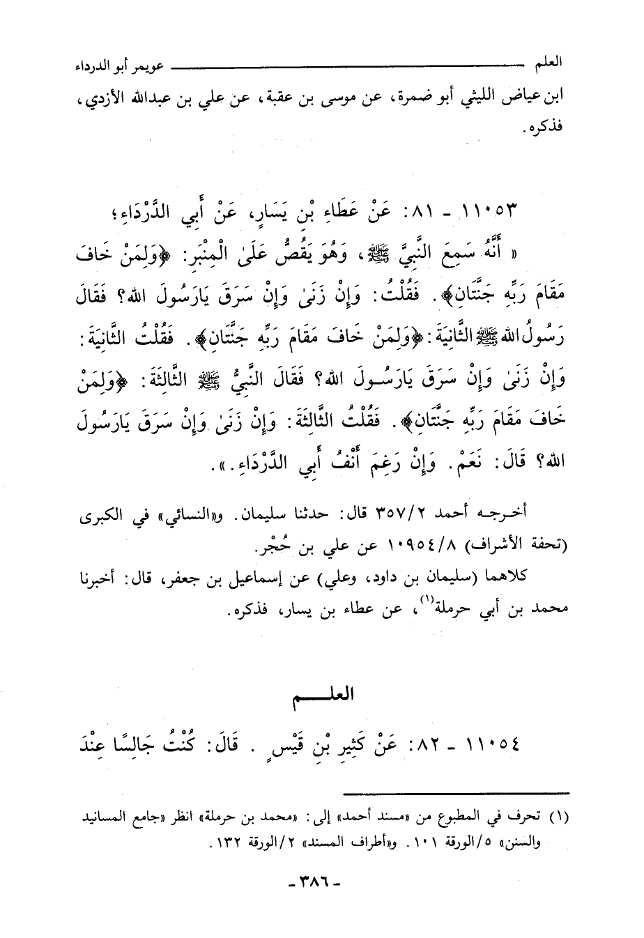 ١١٠٥٣ - عَنْ عَطَاءِ بْنِ يَسَارٍ، عَنْ أَبِي الدَّرْدَاءِ؛