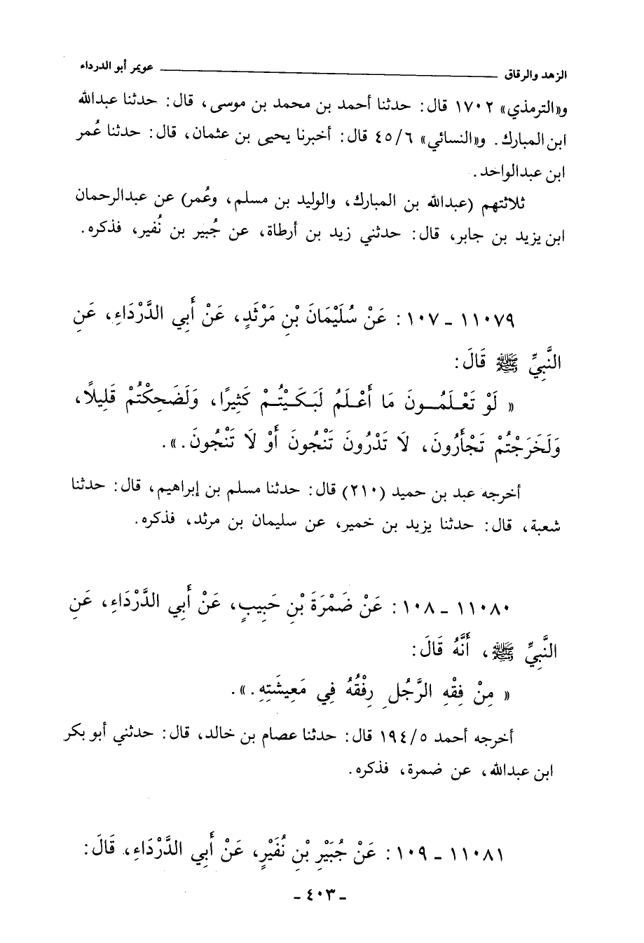 ١١٠٧٩ - عَنْ سُلَيْمَانَ بْنِ مَرْثَدٍ، عَنْ أَبِي الدَّرْدَاءِ، عَنِ النَّبِيِّ صلى الله عليه وسلم، قَالَ: