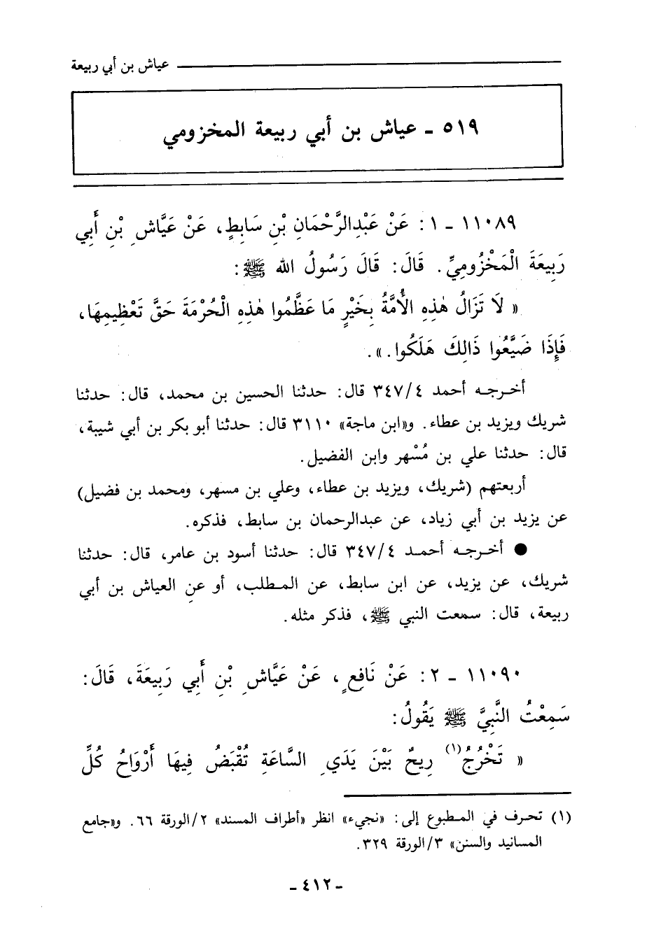 ١١٠٨٩ - عَنْ عَبْدِ الرَّحْمَانِ بْنِ سَابِطٍ، عَنْ عَيَّاشِ بْنِ أَبِي رَبِيعَةَ الْمَخْزُومِيِّ، قَالَ: قَالَ رَسُولُ اللهِ صلى الله عليه وسلم: