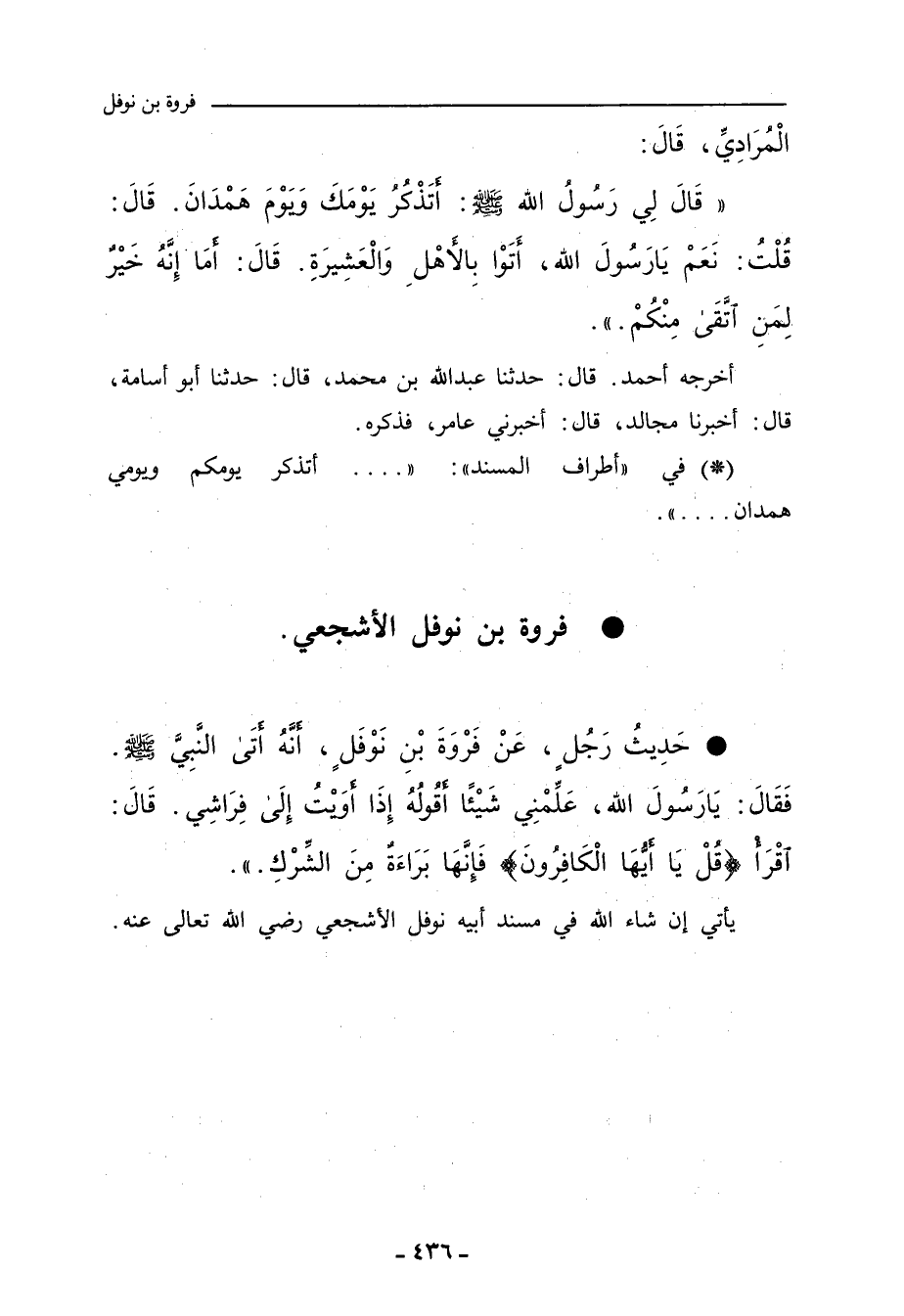 - حَدِيثُ رَجُلٍ، عَنْ فَرْوَةَ بْنِ نَوْفَلٍ؛