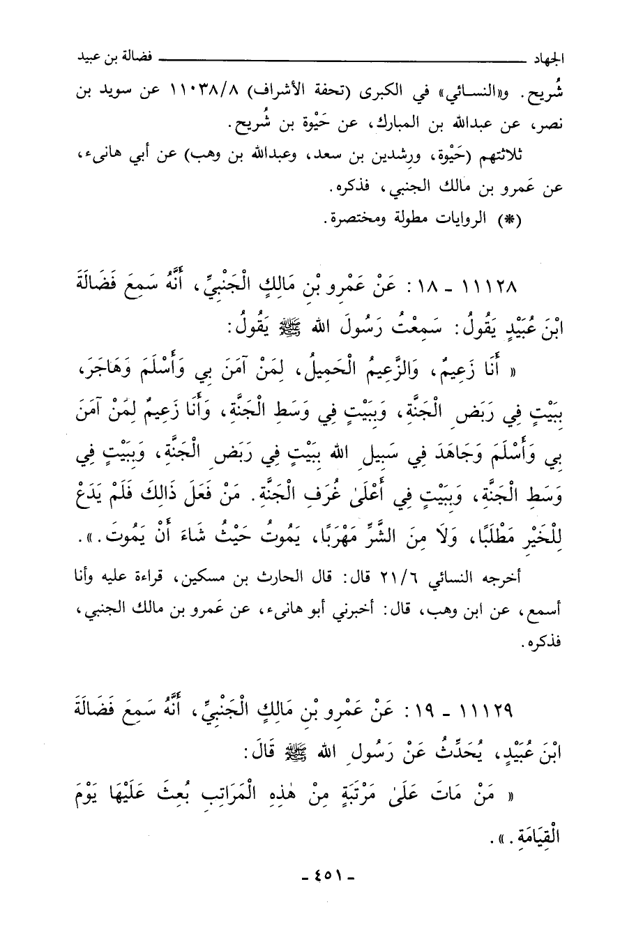 ١١١٢٨ - عَنْ عَمْرِو بْنِ مَالِكٍ الْجَنْبِيِّ، أَنَّهُ سَمِعَ فَضَالَةَ بْنَ عُبَيْدٍ يَقُولُ: سَمِعْتُ رَسُولَ اللهِ صلى الله عليه وسلم يَقُولُ: