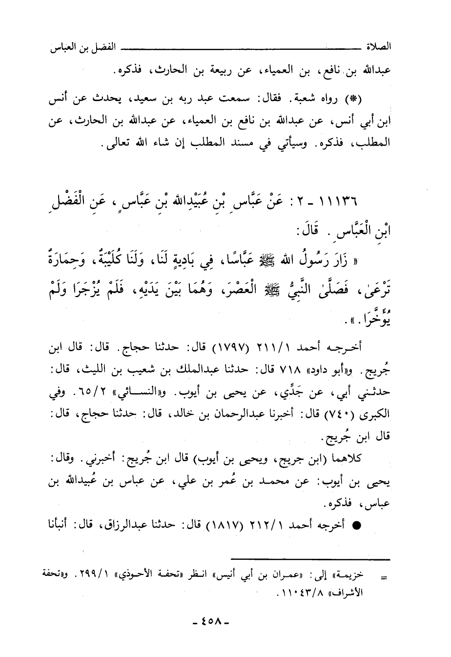 ١١١٣٦ - عَنْ عَبَّاسِ بْنِ عُبَيْدِ اللهِ بْنِ عَبَّاسٍ، عَنِ الْفَضْلِ بْنِ الْعَبَّاسِ، قَالَ:
