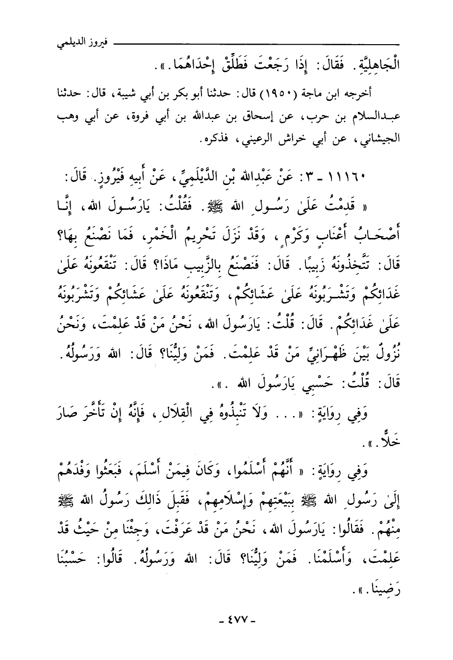 ١١١٦٠ - عَنْ عَبْدِ اللهِ بْنِ الدَّيْلَمِيِّ، عَنْ أَبِيهِ فَيْرُوزَ، قَالَ: