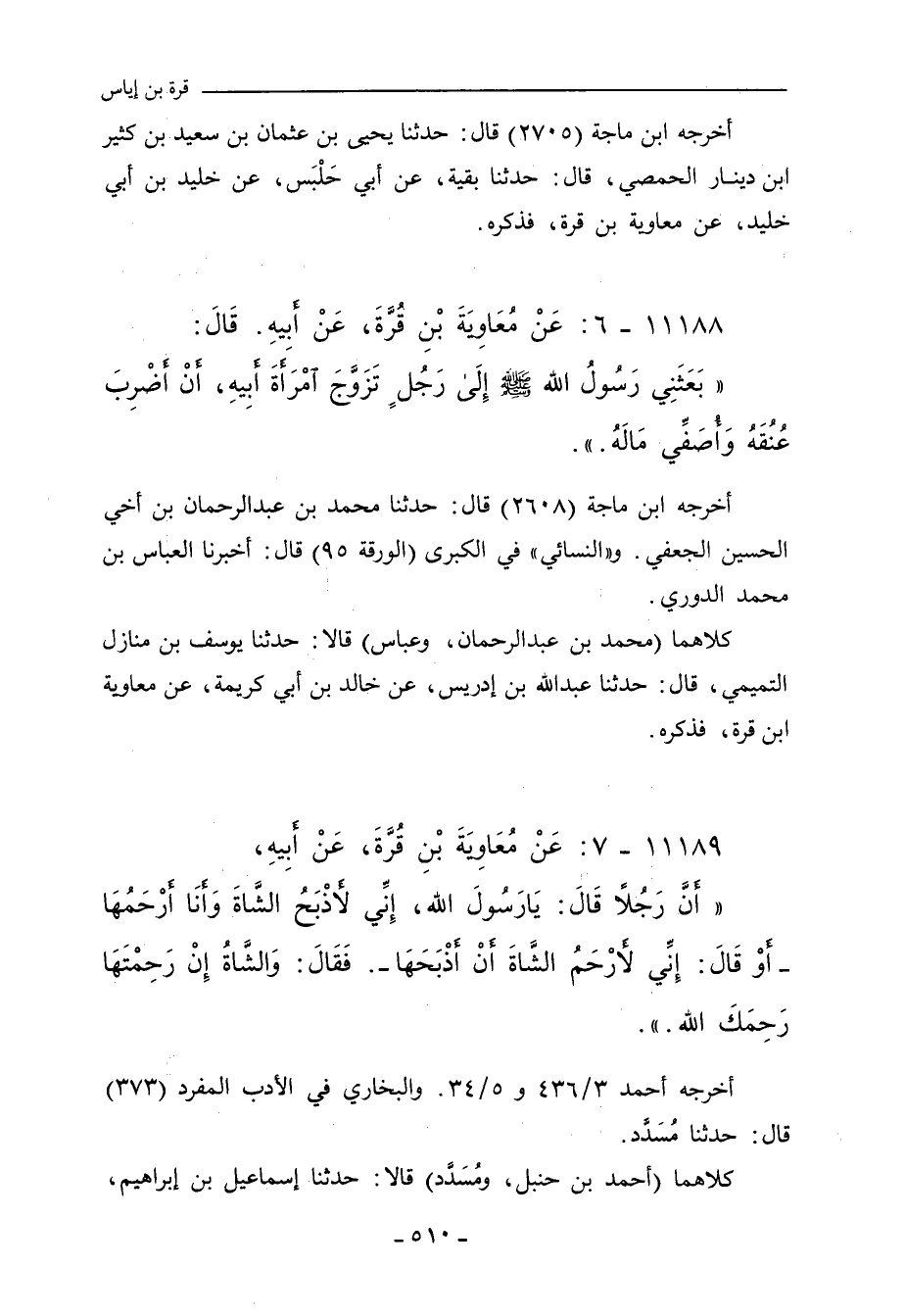 ١١١٨٨ - عَنْ مُعَاوِيَةَ بْنِ قُرَّةَ، عَنْ أَبِيهِ، قَالَ: