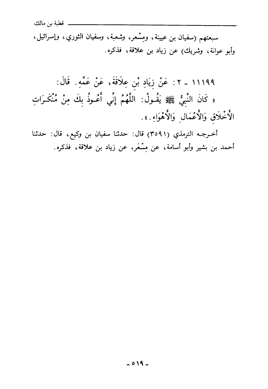 ١١١٩٩ - عَنْ زِيَادِ بْنِ عِلَاقَةَ، عَنْ عَمِّهِ، قَالَ: