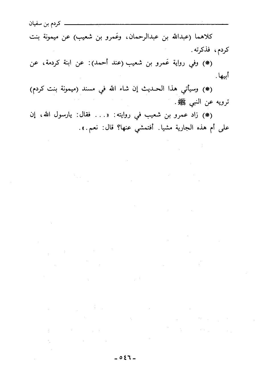 - وسيأتي هذا الحديث، إن شاء الله، في مسند مَيْمُونَة بنت كَرْدَم، ترويه عن النَّبِيِّ صلى الله عليه وسلم.