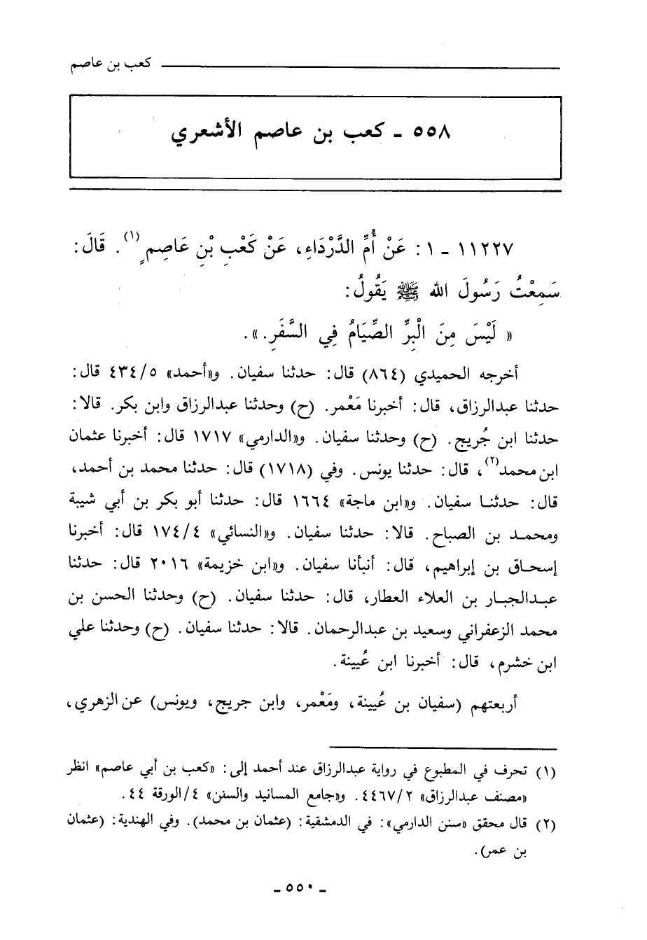 ٥٥٨ - كَعْب بن عاصم الأَشْعَرِيُّ