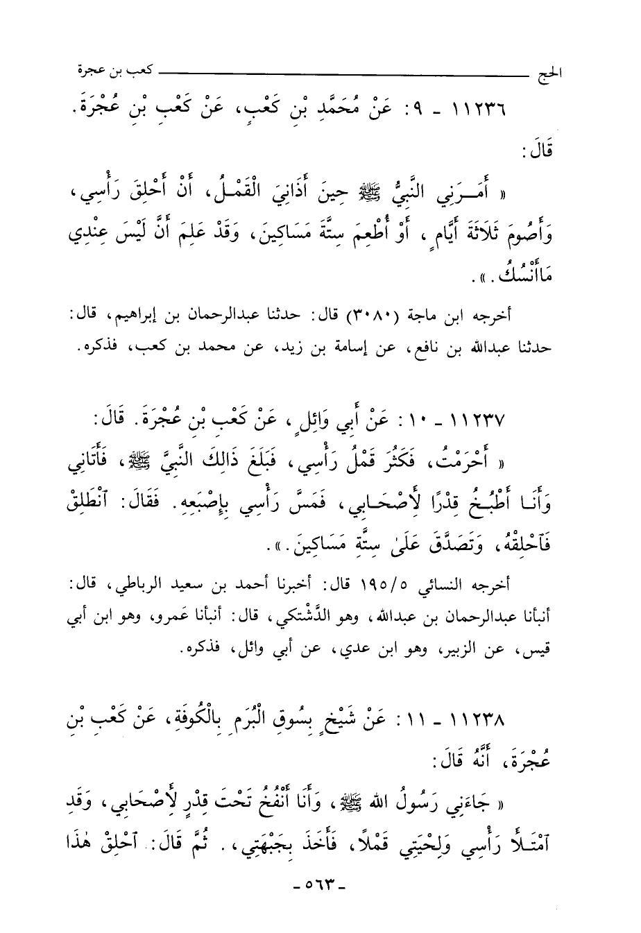 ١١٢٣٦ - عَنْ مُحَمَّدِ بْنِ كَعْبٍ، عَنْ كَعْبِ بْنِ عُجْرَةَ، قَالَ: