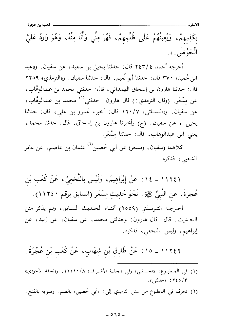 أخرجه أحمد ٤/ ٢٤٣ (١٨٣٠٦) قال: حدَّثنا يَحيى بن سَعِيد، عن سُفْيان. و"عَبد بن حُميد" ٣٧٠ قال: حدَّثنا أبو نُعَيْم، حدَّثنا سُفْيان. و"التِّرمِذي"٢٢٥٩ قال: حدَّثنا هارون بن إِسْحاق الهَمْدَانِي، حدَّثني مُحَمد بن عَبْد الوهَّاب، عن مِسْعَر (ح) قال هارون: وحدَّثني مُحَمد بن عَبْد الوهَّاب، عن سُفْيان. و"النَّسائي"٧/ ١٦٠، وفي "الكبرى"٧٧٨٢ و ٨٧٠٥ قال: أَخْبَرنا عَمْرو بن علي، قال: حدَّثنا يَحيى، عن سُفْيان. وفي ٧/ ١٦٠، وفي "الكبرى"٧٧٨٣ قال: أَخْبَرنا هارون بن إِسْحاق، قال: حدَّثنا مُحَمد، يَعْنِي ابن عَبْد الوَهَّاب، قال: حدَّثنا مِسْعَر. وفي "الكبرى" ٧٧٨٤ قال هارون بن إِسْحاق: وحدَّثني مُحَمد، عن سُفْيان.