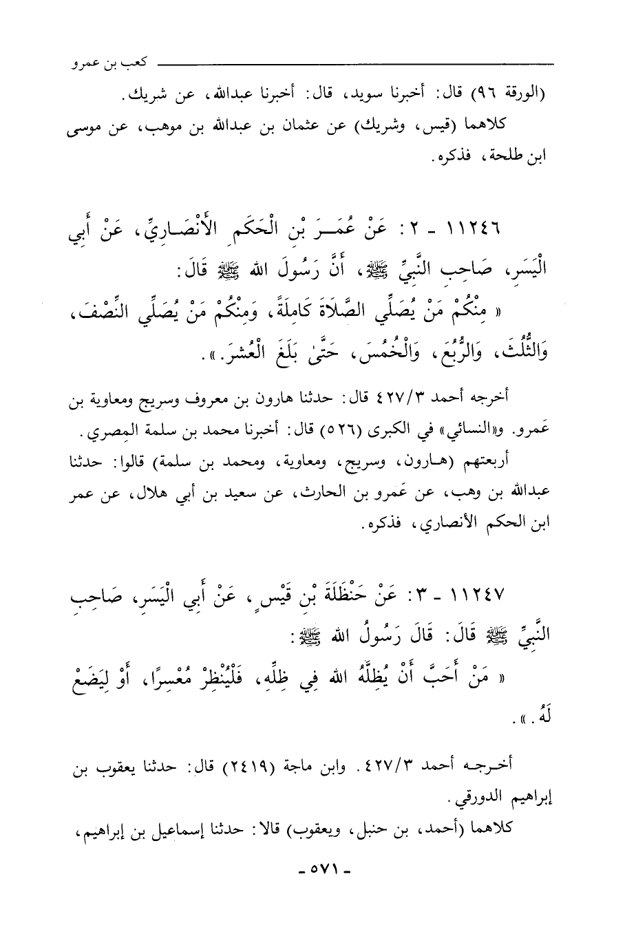 ١١٢٤٦ - عَنْ عُمَرَ بْنِ الْحَكَمِ الأَنْصَارِيِّ، عَنْ أَبِي الْيَسَرِ، صَاحِبِ رَسُولِ اللهِ صلى الله عليه وسلم، أَنَّ رَسُولَ اللهِ صلى الله عليه وسلم قَالَ: