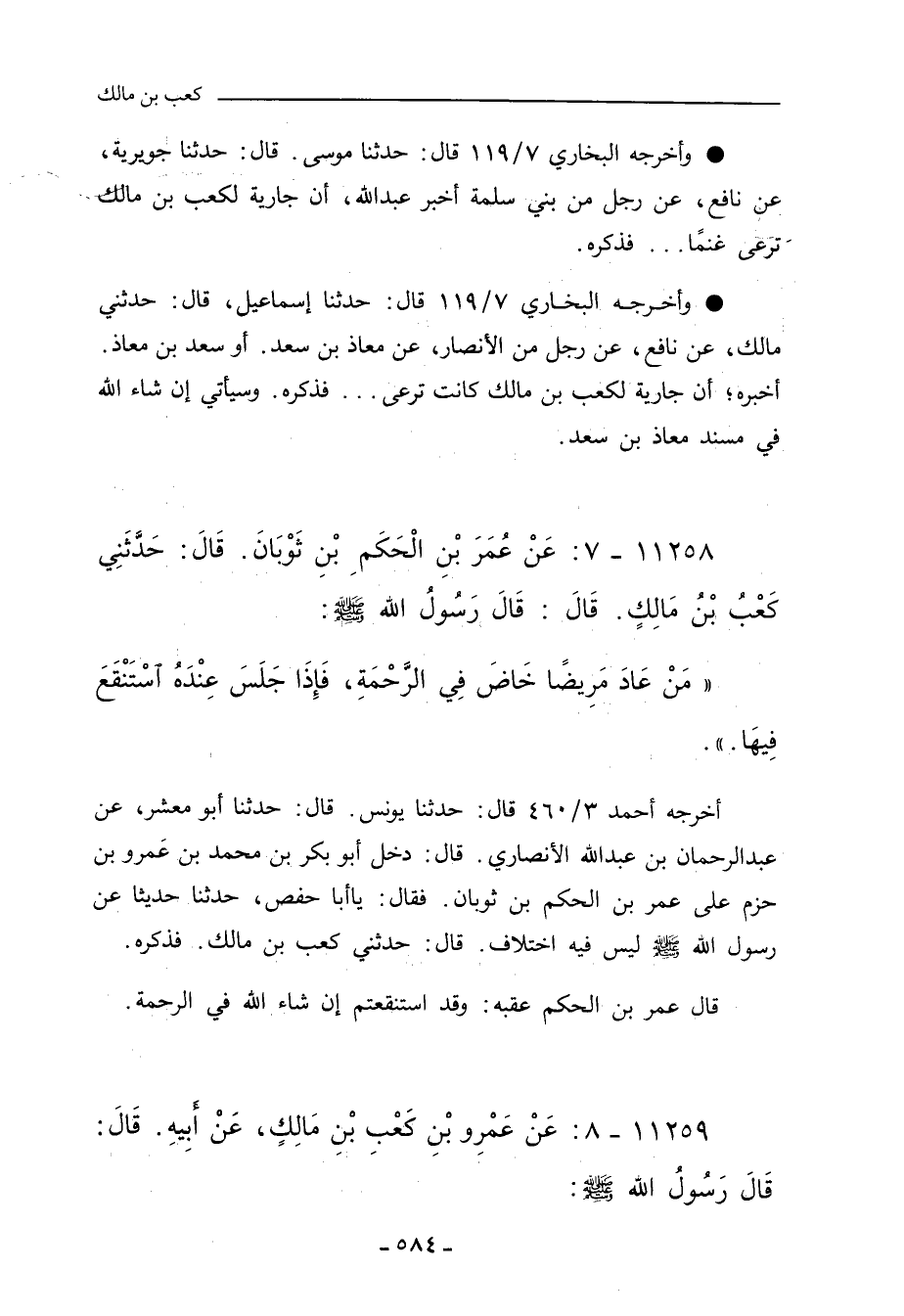 ١١٢٥٨ - عَنْ عُمَرَ بْنِ الْحَكَمِ بْنِ ثَوْبَانَ، قَالَ: حَدَّثَنِي كَعْبُ بْنُ مَالِكٍ، قَالَ: قَالَ رَسُولُ اللهِ صلى الله عليه وسلم:
