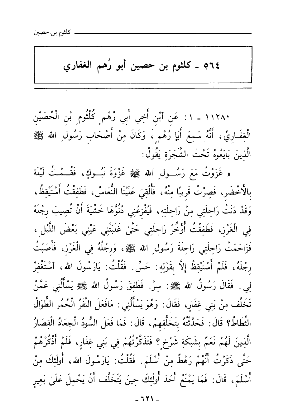 ٥٦٤ - كُلْثُوم بن حُصَيْن، أبو رُهْم الغِفَارِيُّ