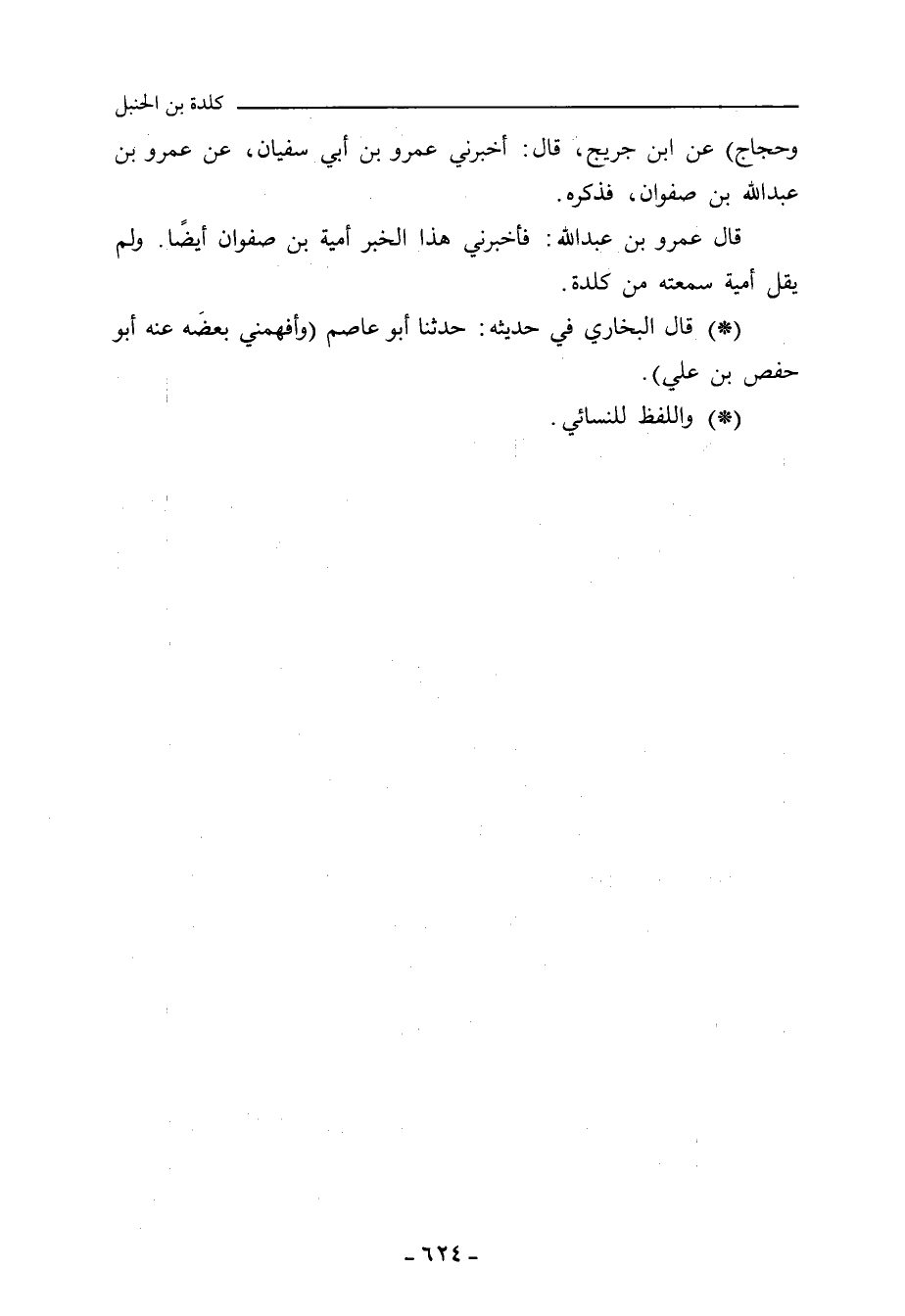 قال عَمْرو بن عَبْد الله: فأخبرني هذا الخبر أُمَيَّة بن صَفْوَان أيضًا، ولم يقل أُمَيَّة سَمِعْتُهُ من كَلَدَة.