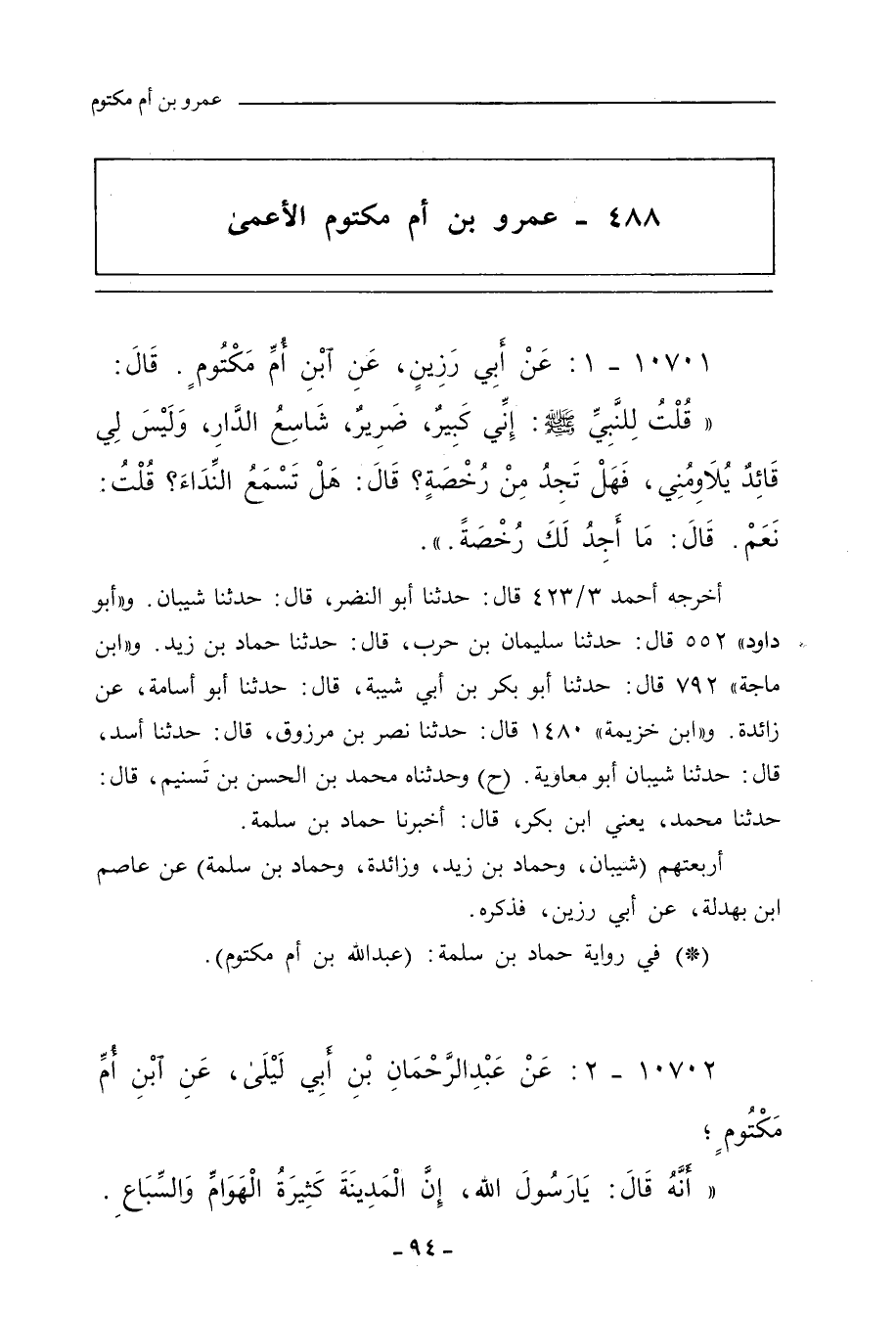 ٤٨٨ - عَمْرو بن أُم مَكْتُوم الأََعْمَى