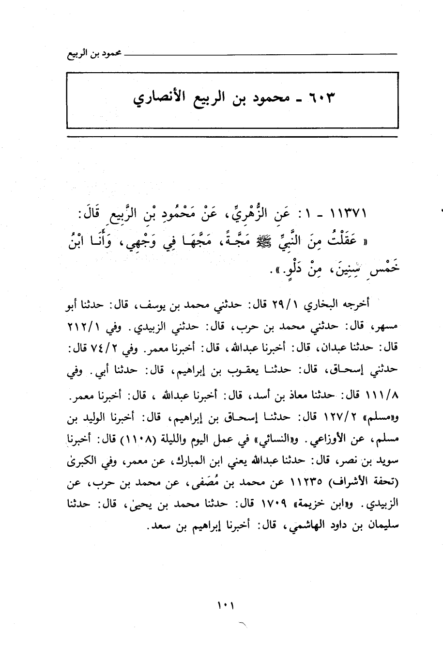 ٦٠٣ - محمود بن الرَّبِيع الأَنْصَارِيُّ
